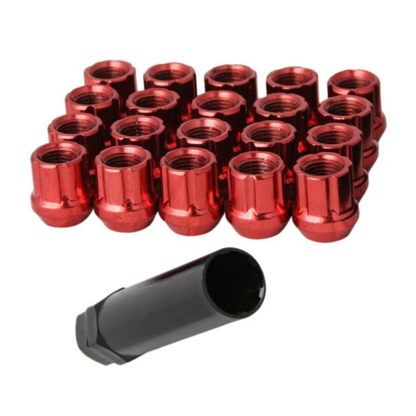 20pc 12x1.25 Spline Lug Nuts w/ Locking Key | Cone Seat | Short Open End | Red